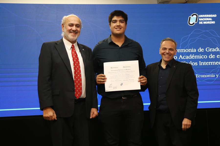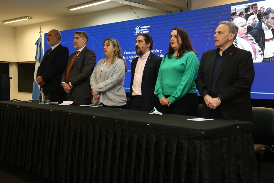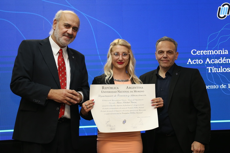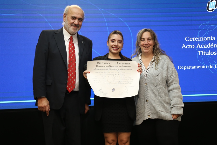 Finalmente, el Rector de la UNM, Hugo Andrade, compartió unas palabras con los presentes: “Desde ahora en más, estos títulos encabezarán sus currículums, sus tarjetas de presentación y hasta su propio nombre cuando estampen su firma, lo que además de ser una condición o expresión competencias profesionales, por ser de nuestra Universidad Nacional de Moreno, aspiramos a que ello represente y les represente el compromiso ético por una sociedad más justa y solidaria y el ejercicio honorable de su profesión. Es decir, esperamos más que nada que la educación universitaria de esta casa los haga personas comprometidas con el prójimo y con el bien común, que no los haya cambiado ni se hayan olvidado de quienes son, ni de donde vienen, que es la única forma de saber a dónde han de ir”.