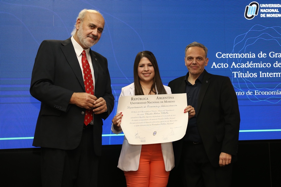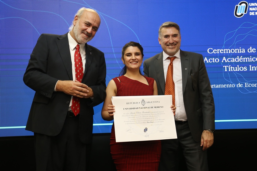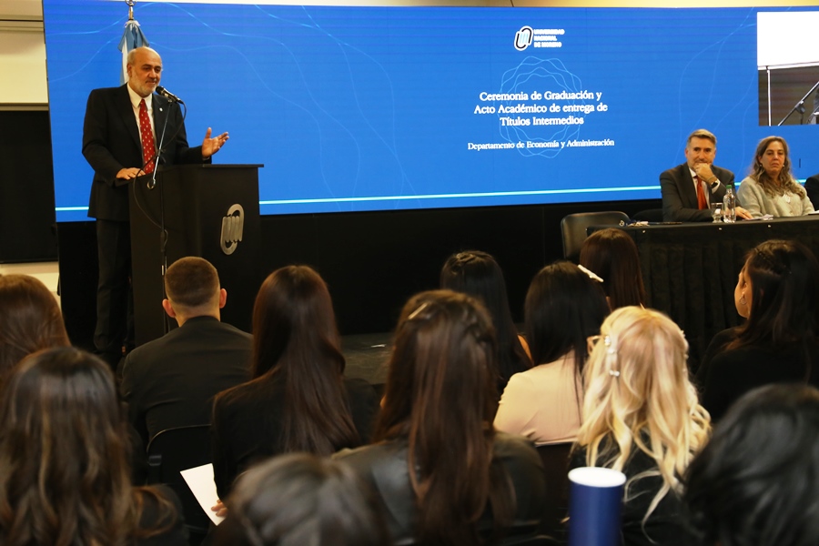 Antes de la jura de los graduados y la entrega de diplomas, Marcelo Monzón (Director–Decano del Departamento de Economía y Administración) dio las palabras de apertura: “Ustedes hoy recibirán un título, su tan ansiado título, y en ese título están depositados muchos significados: esfuerzo, amor puesto por la Institución, esperanzas cifradas, y también las políticas públicas que están sosteniendo este momento, la educación pública para poder tener más y mejores graduados”.
