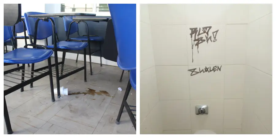 - Evitar escribir y dañar los baños, el mobiliario y demás espacios.