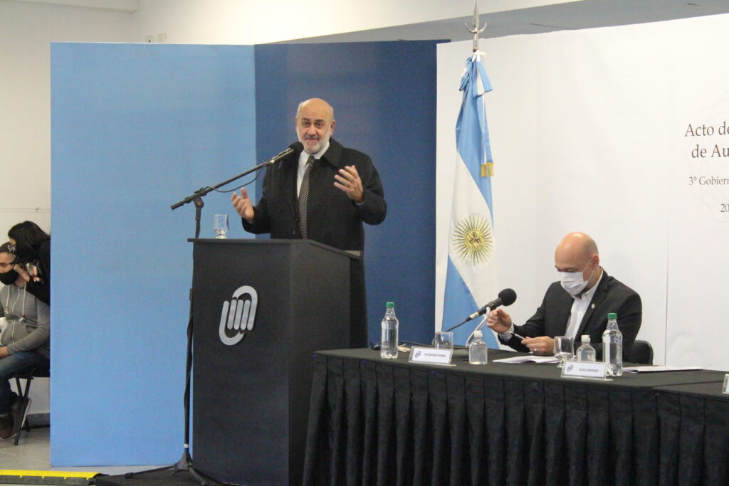 Luego de la lectura de las actas correspondientes y las rúbricas de las mismas por las autoridades, realizó su discurso el nuevo vicerrector de la UNM, Alejandro Robba. “Estamos convencidos que la Argentina tiene un gran futuro. Lo vimos en estos meses de pandemia, cuando aquellos que nos quisieron poner de rodillas, no lo pudieron hacer. Sabemos que este es el único camino para tener un país inclusivo y dar oportunidades a todos aquellos que, si no hubiera estado esta Universidad, hoy no estuvieran cursando en nuestras aulas. El camino es financiar la ciencia y la tecnología. Desde nuestro país tenemos madera, tenemos un gobierno que cree en la ciencia y la tecnología, que cree en su mercado interno, y que cree en la soberanía como única forma de desarrollo. Esta nueva etapa de la Universidad tiene como objetivo principal que tengamos docentes que puedan tener su centro de gravedad en esta institución, compañeros decanos y decanas, y nuevos decanos y decanas de carreras, que puedan estar más cerca que nunca, que tengan la posibilidad de desarrollarse profesionalmente en nuestra Universidad. Y aquellos que ya tenemos nuestros años, poder acompañar este proceso de trasvasamiento generacional que llevaremos adelante”.