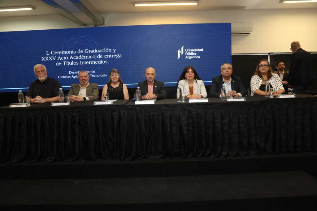 Estuvieron presentes el Rector Alejandro Robba, la Directora-Decana Liliana Taramasso, y los Coordinadores-Vicedecanos de las carreras que conforman el Departamento de Ciencias Aplicadas y Tecnología: de la carrera de Ingeniería en Electrónica, Gabriel Venturino; de la Licenciatura en Gestión Ambiental, Marcela Álvarez; de la carrera de Arquitectura, Homero Pellicer; de la Licenciatura en Biotecnología, Fernando Raibenberg; y del Área de Diseño, Marianela Jauregui.