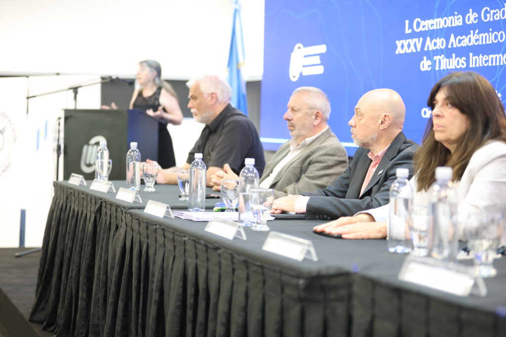 Las palabras de bienvenida estuvieron a cargo de la Directora-Decana del Departamento, María Liliana Taramasso: “En primer lugar, quiero felicitar a todos los presentes. Sabemos del gran sacrificio de todos los que estuvieron detrás de este logro de cada graduado y graduada, sus familiares y amigos, que se suman al orgullo de la comunidad educativa. En este momento nos atraviesa todo aquello que hizo que ustedes logren este conocimiento y desarrollo: cada asignatura, los exámenes, los laboratorios. Es así, entre todos y todas, que se construyen los sueños: el del ejercicio profesional, de la mejora de la calidad de vida propia y de sus familias y, sobre todo, el sueño de transformar brindando como conocimientos aplicados a la resolución de problemas de nuestros territorios, ámbitos, de la ciencia y la tecnología. Por último, quiero agregar que esto no sería posible sin el ejercicio de los derechos, favorecidos y garantizados por el desarrollo de políticas de un estado presente que permite que hoy estemos todos y todas aquí”.