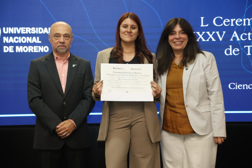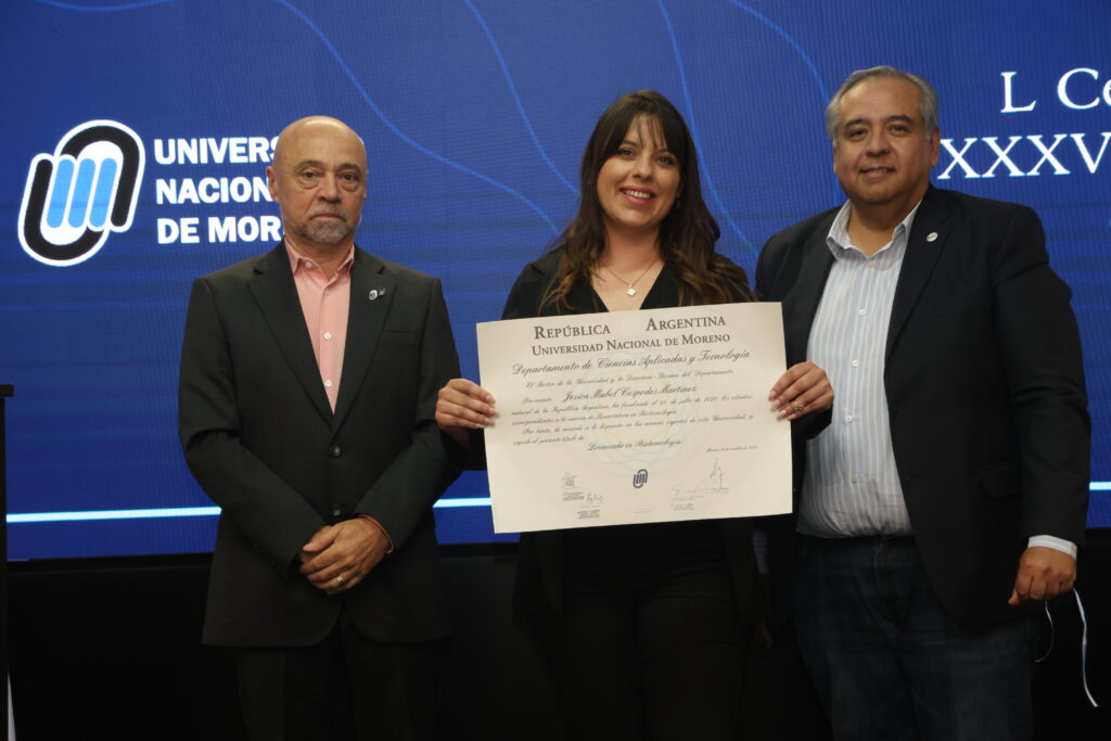 La UNM celebró la L Ceremonia de Graduación y XXXV Acto Académico de entrega de Títulos Intermedios del Departamento de Ciencias Aplicadas y Tecnología. Durante el acto se entregaron 23 títulos de grado a estudiantes que finalizaron las obligaciones curriculares correspondientes a las carreras de Arquitectura, Licenciatura en Biotecnología y Licenciatura en Gestión Ambiental. Además, recibieron sus diplomas 24 estudiantes que finalizaron las Tecnicaturas Universitarias en Electrónica, en Gestión Ambiental y en Biotecnología. Además, se hizo entrega de un certificado de la Diplomatura de Estudios Avanzados en Producción y Gestión Integral del Hábitat, propuesta dictada por el Centro de Estudios para el Desarrollo Territorial (CEDET).
