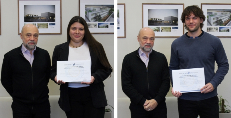 En esta última sesión, el Consejo entregó dos nuevos Diplomas de Reconocimiento a la Excelencia Académica a, en primer lugar, la Ingeniera Natalia Beatriz Díaz, graduada UNM y docente, por haber recibido en 2023 el Permio INVAP a la Mejor Tesis de Grado de Ingeniería por su trabajo “Automatización de Interferómetro Tipo Twyman- Green NLP-Tesa”. En segundo lugar se reconoció al Licenciado Alan Rodolfo Laustonau, graduado UNM y docente, por haber obtenido el 1er Puesto en la categoría Estudiantes universitarios y jóvenes profesionales del Premio Aldo Ferrer que entrega el Ministerios de Hacienda de la Provincia de Buenos Aires y el Banco Provincia por su trabajo “El Programa de empleo de último recurso como estrategia para abordar el desempleo en la Provincia de Buenos Aires (2015-2021)”.