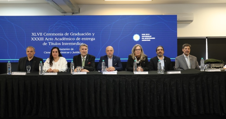 Estuvieron presentes el Vicerrector Alejandro Robba, el Director-Decano Marcelo Monzón y también los Coordinadores-Vicedecanos de las carreras que integran el Departamento: de la Licenciatura en Relaciones del Trabajo, Lara Yepes; de la Licenciatura en Administración, Leticia Patrucchi; de la Licenciatura en Economía, Agustín Mario; de la carrera de Contador Público Nacional, Marcelo Cafferata Ferri, y de la carrera de Abogacía, Guillermo Cony.