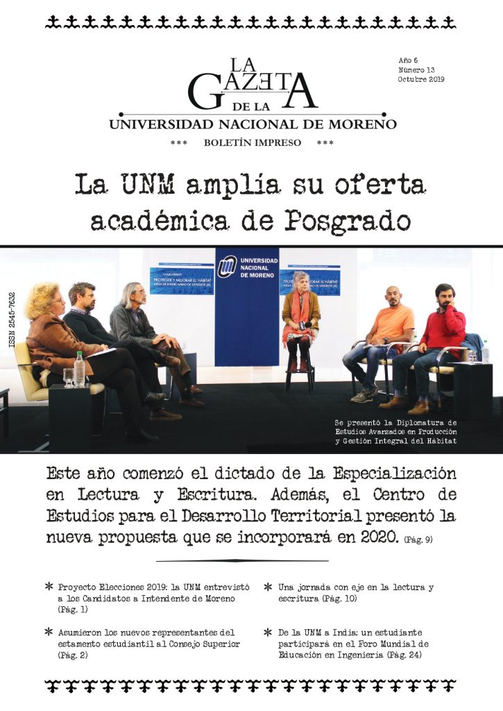 Esta edición pone el énfasis en el afianzamiento de la oferta académica de posgrado con una nueva propuesta, la Diplomatura de Estudios Avanzados en Producción y Gestión Integral del Hábitat, y las actividades realizadas por la Especialización en Lectura y Escritura. Además, recoge otros sucesos importantes como las elecciones del claustro estudiantil para el Gobierno Universitario, movilidad estudiantil y demás actividades que hacen a la vida universitaria.
