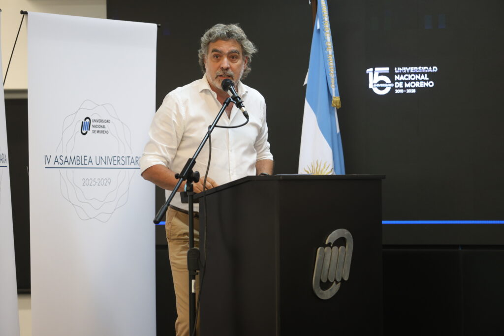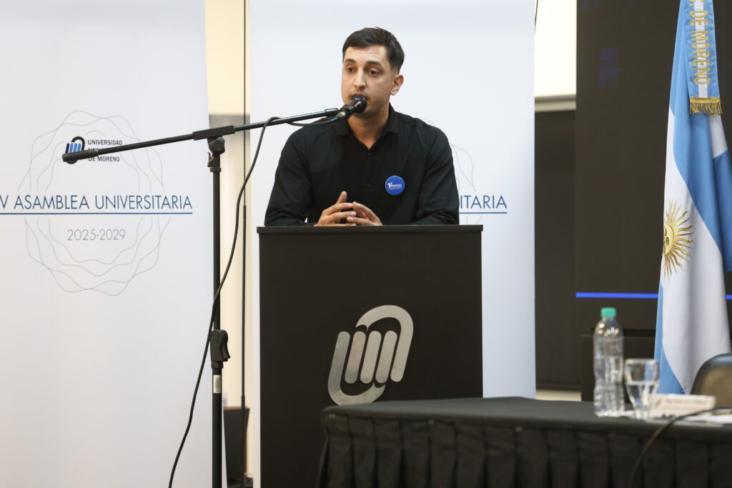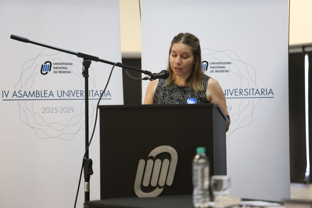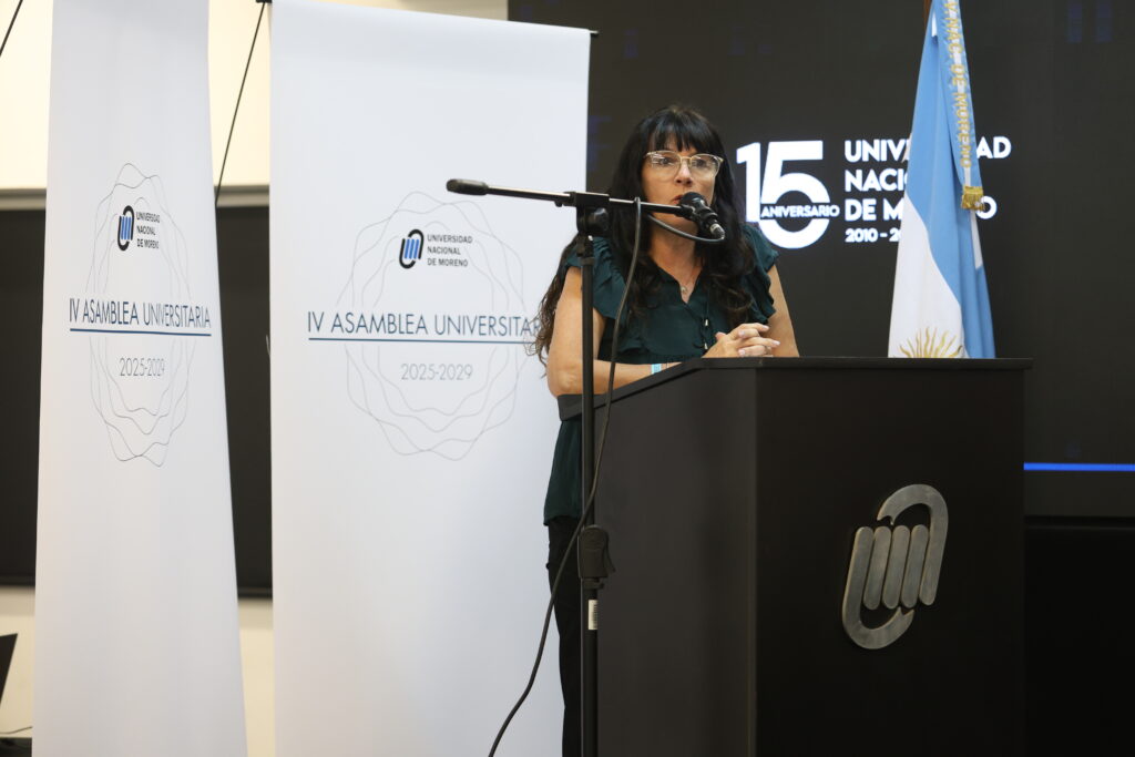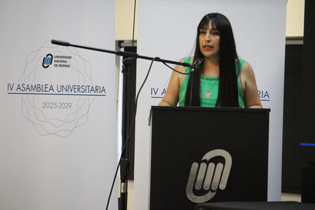 Antonella Montelpare, en nombre de los trabajadores nodocentes de la UNM, afirmó: “Siento un orgullo enorme de estar en esta asamblea representando al estamento nodocente de la UNM. Quienes trabajamos todos los días en esta institución sabemos lo que cuesta sostener la esperanza en momentos en donde tantas certezas se nos tambalean. Quiero resaltar el valor inmenso que tiene la UNM porque no es solamente un edificio, una estructura académica o administrativa, es un espacio donde la educación transforma, donde la comunidad se encuentra y donde la presencia del estado se vuelve concreta y donde los sueños toman forma día a día. En un contexto en donde la desigualdad, la inestabilidad y la crueldad social se vuelven parte de nuestra vida cotidiana, nuestra universidad permanece como un faro. Aprovecho esta oportunidad también para reafirmar mi compromiso con mis compañeras y compañeros y también mi compromiso con esta institución con sus valores y con la tarea inmensa que tenemos por delante”.