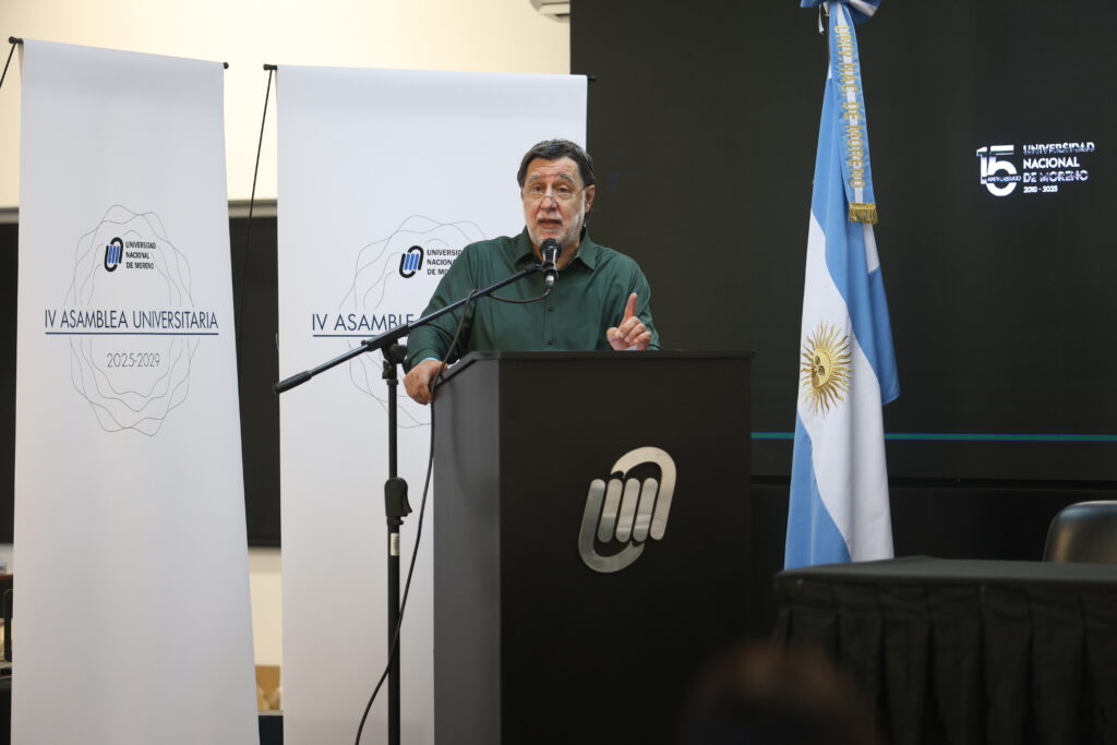 Hugo Andrade, Rector saliente quien ejerce el cargo desde 2010 cuando fuera designado como Rector organizador al crearse la UNM, expresó a los presentes: “Felicitaciones a todos los representantes electos y a la junta electoral por el proceso que permitio consagrar esta nueva Asamblea. Esperamos que esta 4ta asamblea que eligió a las autoridades del próximo gobierno universitario sea buen recuerdo para todos del ejercicio de la democracia universitaria. Deseo a la próxima conducción el mayor de los éxitos y me comprometo a acompañarlos desde otro rol. Creo que la Universidad ya está conformada; ahora hay que hacerla trascender, somos una comunidad universitaria constituida, aprendimos las reglas, los rituales y eso está a la vista. Hay que ganar una batalla pero afuera de acá: hoy el estado nacional no cree en la fuerza de la universidad y el municipio de Moreno tampoco. Yo tengo la responsabilidad de seguir predicando y contribuyendo a la autonomía que construimos, que nos dejó llegar hasta acá y nos permitió ser lo que somos. La universidad y toda la comunidad, y sus estudiantes principalmente, constituyen un gran orgullo para todos y debemos seguir trabajando por eso”.